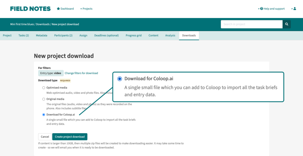 Our integration allows researchers to push Field Notes content very quickly into the CoLoop platform, for integrated multi-method analysis across markets.